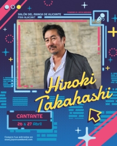 Hiroki Takahashi, singer of the first opening of Dragon Ball TV series, will be at the Salon del Manga de Alicante / Alicante Manga Fair today Saturday 26th and tomorrow Sunday 27th of April, offering Q&A sessions, signings opportunities, and two concerts.