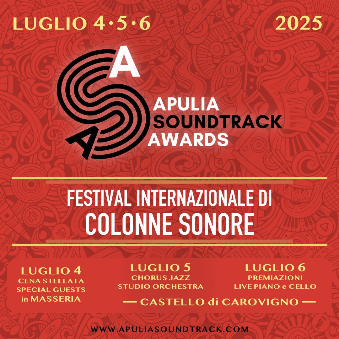 The magic of the Apulia Soundtrack Awards is back for its 4th edition, which will be celebrated this weekend, July 4–6, 2025, in the beautiful city of Carovigno in Puglia, Italy. The festival will present three days of music, cinema, and masterclasses, open to the public, giving special emphasis to the educative activities with the guests & the 16 composers finalists of the Emerging Composers Contest (read more).