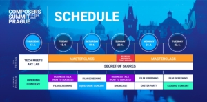 The Composers Summit Prague brings together renowned Hollywood composers in the heart of Europe. This international extravaganza is your ticket to unlocking the closely-guarded secrets behind some of the most legendary film scores in cinematic history. Over the course of several days, participants engage in the creation of novel musical works, draw inspiration from one another, share extensive professional insights, and cultivate valuable collaborative relationships. During the event you can enjoy masterclasses led by industry experts, an Opening Concert, Recording workshop, Film screenings, Listening Sessions, Showcase of talented composers, Closing Concert and much more…