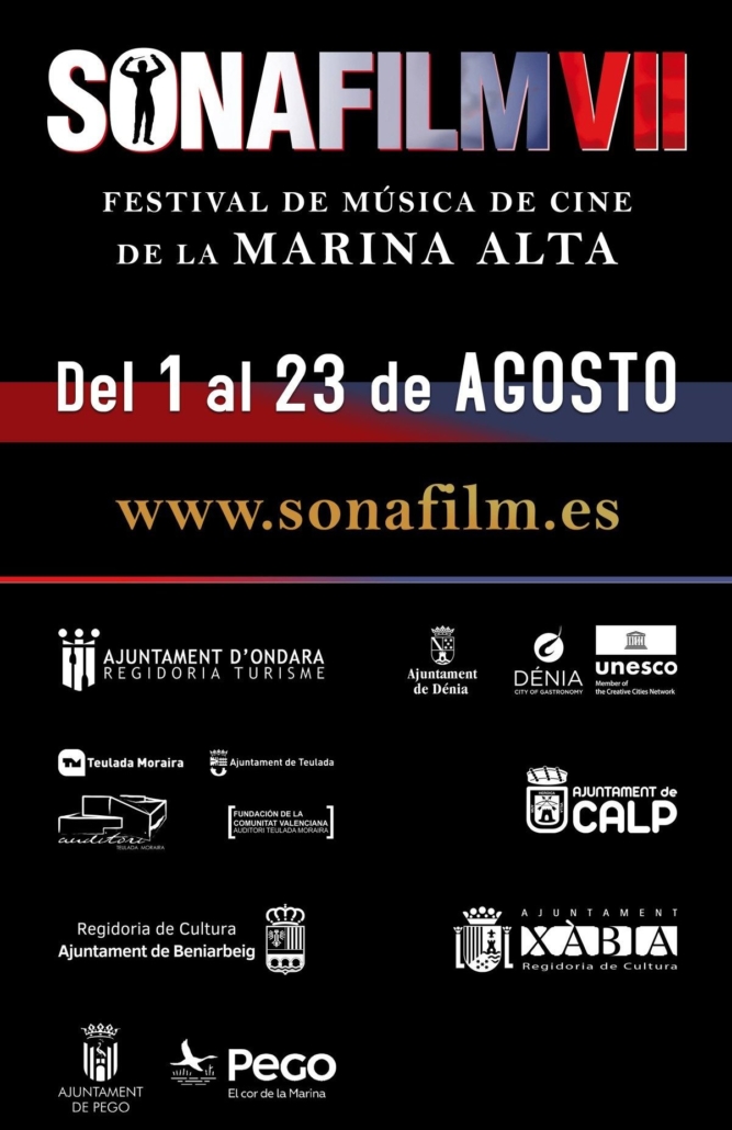 SONAFILM, el Festival de Música de Cine Marina Alta, ha presentado hoy viernes 23 de mayo en la sede de la SGAE en Madrid (Calle Fernando VI, nº 4) los contenidos de su séptima edición, que se celebrará del 1 al 23 de agosto con invitados internacionales como el estadounidense Vince DiCola -compositor de “Rocky IV” y “Transformers: The Movie”- y hasta ocho conciertos repartidos en las localidades de Ondara, Dénia, Calp, Teulada Moraira, Beniarbeig, Xàbia/Jávea y Pego.