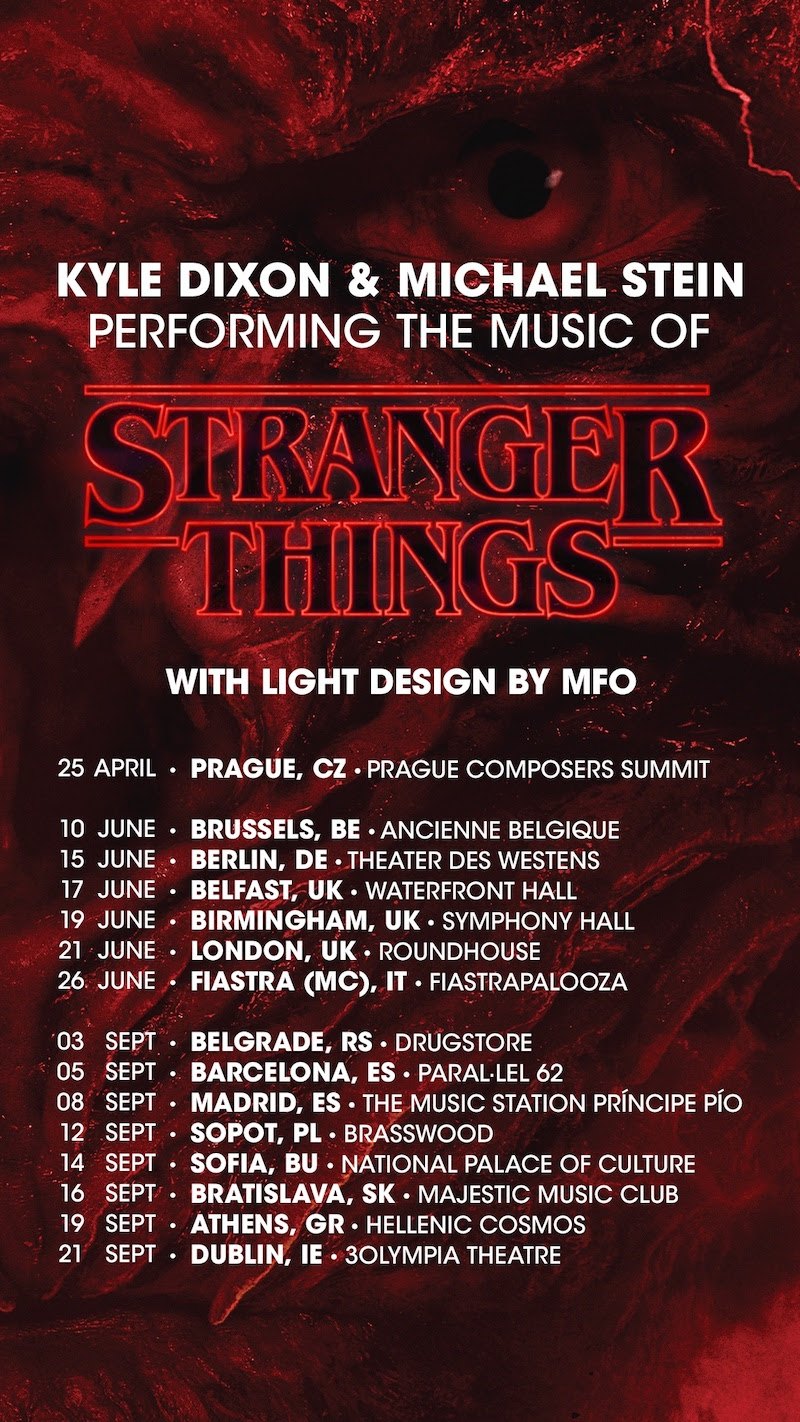 Kyle Dixon and Michael Stein, the Emmy-winning composers of the Stranger Things soundtrack, will perform an immersive concert tour in 2026, collaborating with visual artist MFO (Marcel Weber), bringing the show’s music to life across Europe in: Czech Republic, Belgium, Germany, UK, Italy, Serbia, Spain, Poland, Bulgaria, Slovakia, Greece and Ireland.