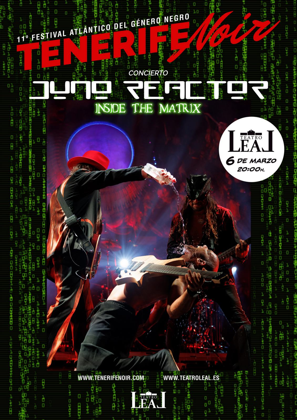 19 de febrero. La formación británica Juno Reactor traerá a España “Inside The Matrix”, un espectáculo en directo centrado en las composiciones que firmó para el universo de la saga cinematográfica “The Matrix”, con un repertorio ligado a “The Matrix: Reloaded” (2003) y “The Matrix: Revolutions” (2003). La propuesta se podrá ver en dos conciertos únicos en Canarias, el 6 de marzo en el Teatro Leal (C/ Obispo Rey Redondo, 50) de San Cristóbal de La Laguna y el 7 de marzo en el Teatro Guiniguada (C/ Mesa de León, 2) de Las Palmas de Gran Canaria, ambos a las 20.00 horas, dentro de la programación de la undécima edición del festival Tenerife Noir.