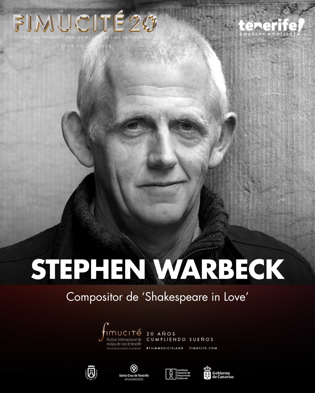 🎬✨ ¡La elegancia del Oscar aterriza en nuestro 20 aniversario! Es un honor inmenso presentar al maestro Stephen Warbeck, uno de los compositores más versátiles y laureados de la escena internacional, cuya presencia en esta edición de FIMUCITÉ promete ser un hito inolvidable para los amantes del séptimo arte.