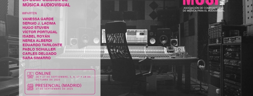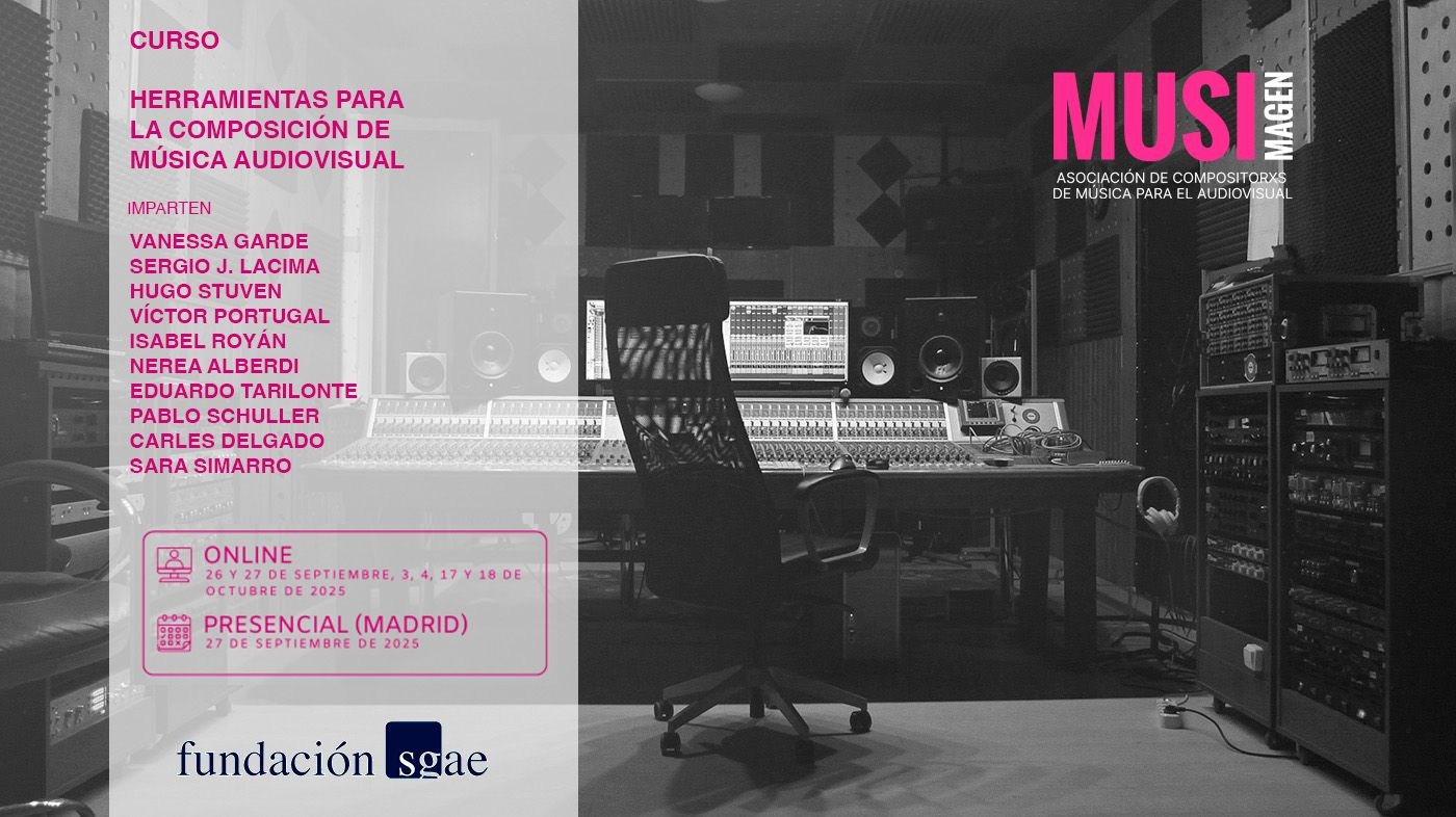 Musimagen y Fundación SGAE presentan la 2ª edición del curso “Herramientas para la composición de música audiovisual”, una propuesta formativa dirigida a compositores, intérpretes, estudiantes y profesionales del ámbito musical y audiovisual. El programa combina formación online y presencial, desarrollándose a lo largo de tres fines de semana con sesiones teóricas virtuales y un módulo final presencial en el Aula de la Fundación SGAE, en Madrid.